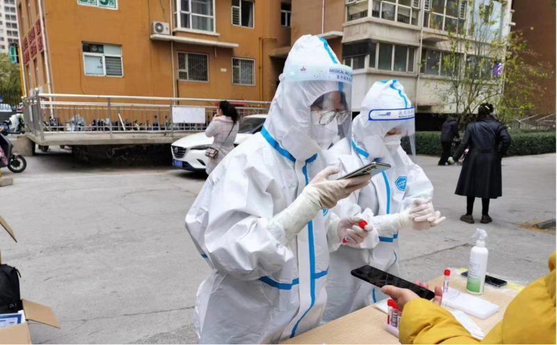 11月21日,機(jī)關(guān)黨總支號(hào)召全體黨員干部就地轉(zhuǎn)崗,黨員高欣、張曉風(fēng)、李萍、麻鄭霞、武婷婷,預(yù)備黨員張玉葉等同志,紛紛化身“志愿紅”“大白”沖鋒在戰(zhàn)“疫”一線,協(xié)助社區(qū)開展維持隊(duì)伍秩序、噴灑消毒液、核對(duì)人員信息、掃描檢疫碼、采集核酸等工作,展現(xiàn)了新時(shí)代“市政人”的風(fēng)采。