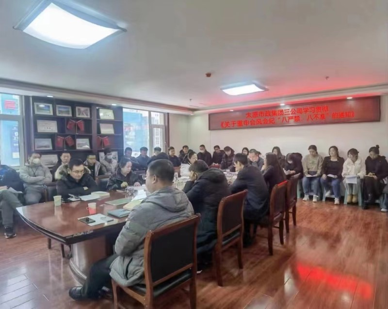 太原市政集團(tuán)組織黨員干部學(xué)習(xí)《省紀(jì)委關(guān)于重申會風(fēng)會紀(jì)“八嚴(yán)禁、八不準(zhǔn)”的通知》文件精神