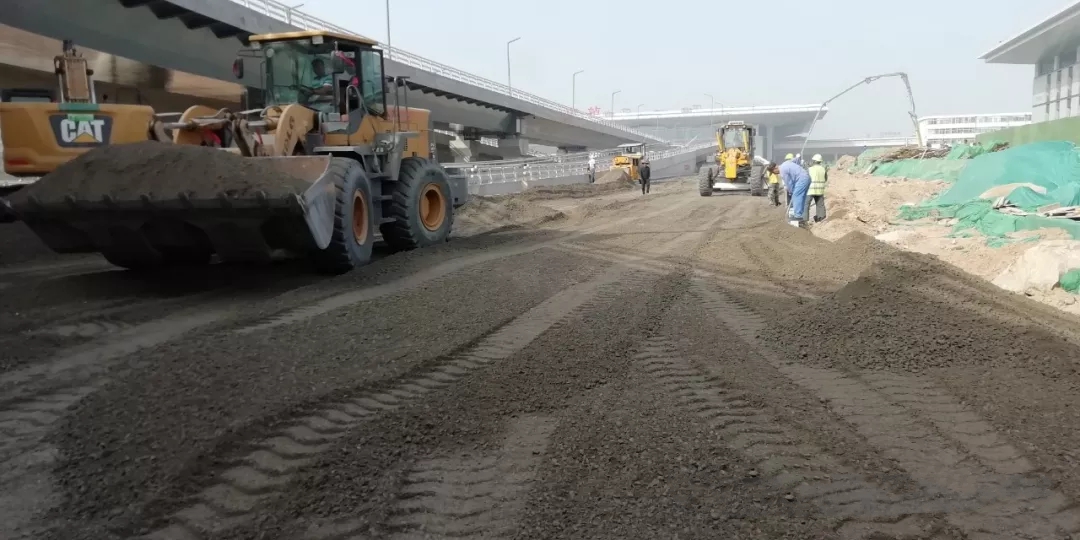7月2日,太原市政建設(shè)集團(tuán)有限公司太原南站東廣場(chǎng)配套路網(wǎng)工程龍堡路、規(guī)劃一路、F1路、F2路、貴賓小路、ABCDE匝道水穩(wěn)鋪設(shè)已全部完成。