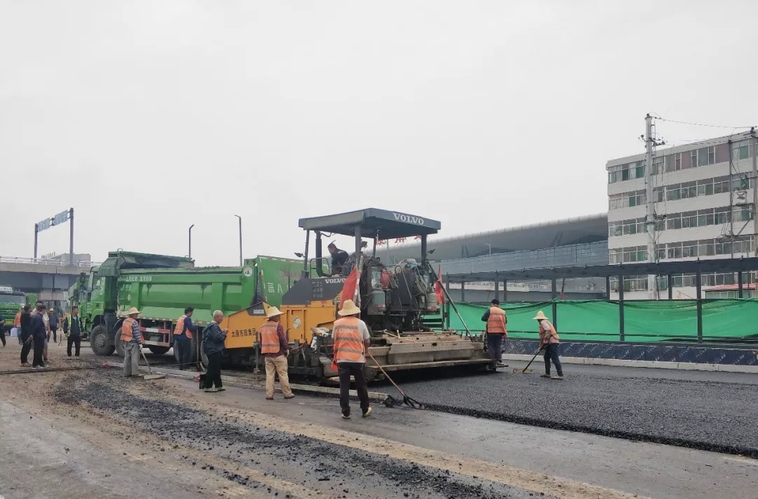 太原市政建設(shè)集團有限公司太原南站東廣場配套路網(wǎng)工程龍堡路、光明東街等8條道路下面層瀝青已全部鋪設(shè)完成
