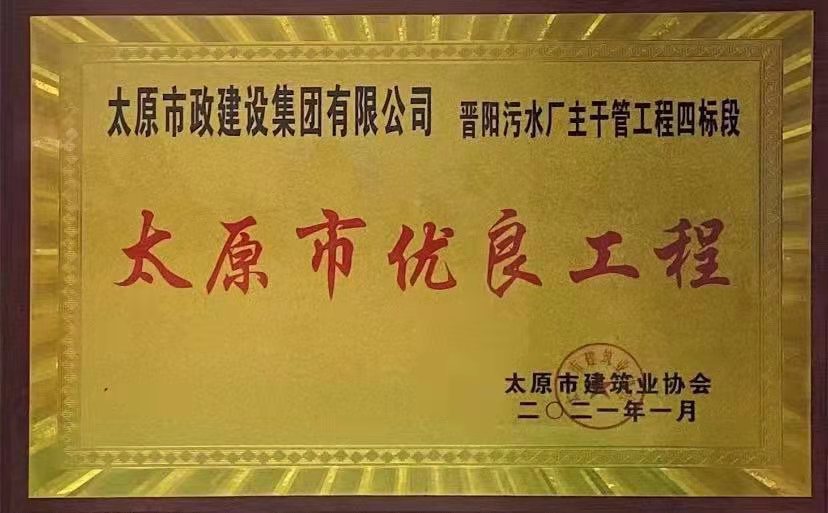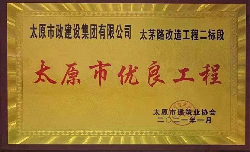 2021年1月13日,集團公司承建的晉陽污水廠主干管工程四標段、太茅路改造工程二標段、臥虎山快速路建設(shè)工程一標段、上莊街(西中環(huán)——少管所三岔口)道路改造工程被太原市建筑業(yè)協(xié)會評為2020年“太原市優(yōu)良工程”,工程項目經(jīng)理郝東輝、高鴻、李瑞金被評為“2020年度太原市工程建設(shè)優(yōu)秀項目經(jīng)理”。