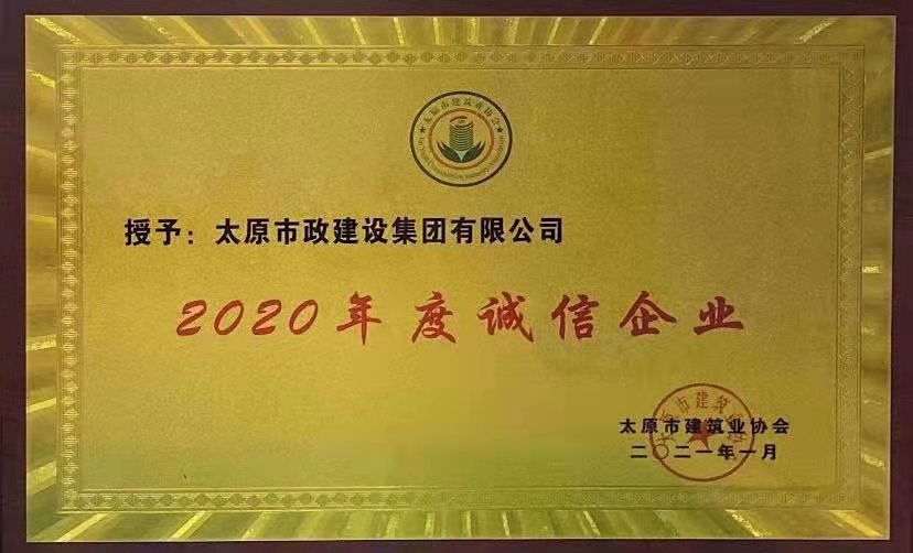 2021年1月26日,集團公司被太原市建筑業(yè)協(xié)會評選為“2020年度誠信企業(yè)”。