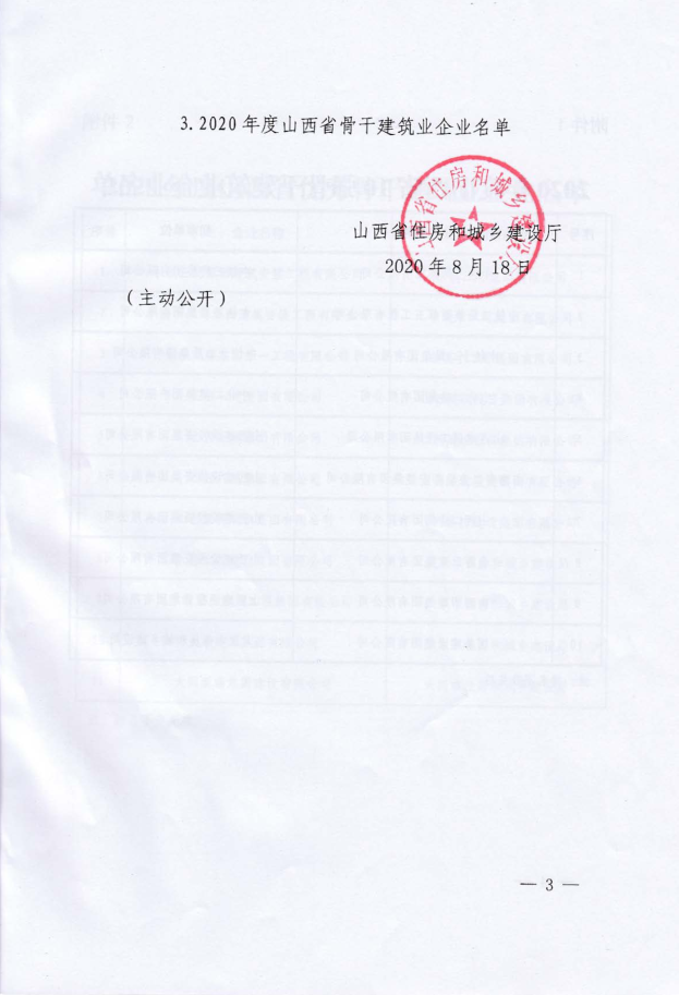近日,山西省住房和城鄉(xiāng)建設(shè)廳發(fā)布《關(guān)于認(rèn)定2020年度山西省骨干、優(yōu)秀骨干和10強(qiáng)骨干建筑業(yè)企業(yè)的決定》,集團(tuán)公司再次被認(rèn)定為“山西省優(yōu)秀骨干建筑業(yè)企業(yè)”。