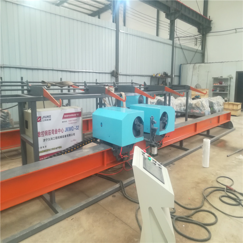 數(shù)控立式鋼筋彎曲中心(數(shù)控鋼筋彎曲中心)專為高層建筑、高速公路、高速鐵路、大型橋梁等工程混凝土結(jié)構(gòu)內(nèi)主骨架鋼筋的彎曲加工高性能產(chǎn)品,彎曲中心能加工直徑φ32mm的高強(qiáng)度螺紋鋼。特點(diǎn)是中間有一個(gè)鋼筋加緊機(jī)構(gòu),有兩個(gè)機(jī)頭在特定的軌道上可以自由移動(dòng)彎曲。具備在一個(gè)工作單元內(nèi)同時(shí)進(jìn)行雙向彎曲的加工能力。